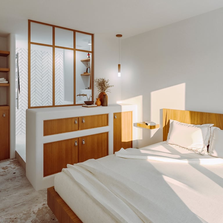 Cet appartement modeste bénéficie ainsi d'un traitement simple mais de qualité, offrant un refuge dépaysant et apaisant en Algarve.