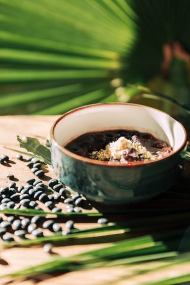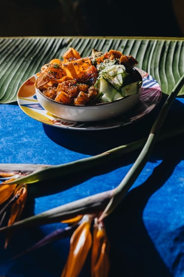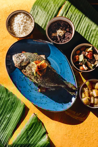 Le set design, minutieusement conçu, s'aligne parfaitement avec l'univers tropical du restaurant et les saveurs exotiques des plats présentés. Chaque élément présent dans la scène, qu'il s'agisse de décors, de vaisselle ou de fonds, est choisi pour créer une synergie visuelle qui reflète le dépaysement et la passion culinaire du Rodízio Nice.