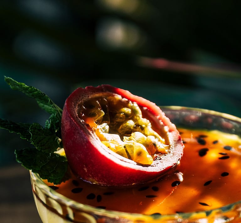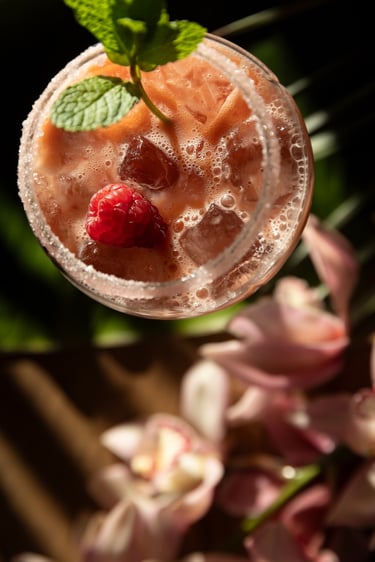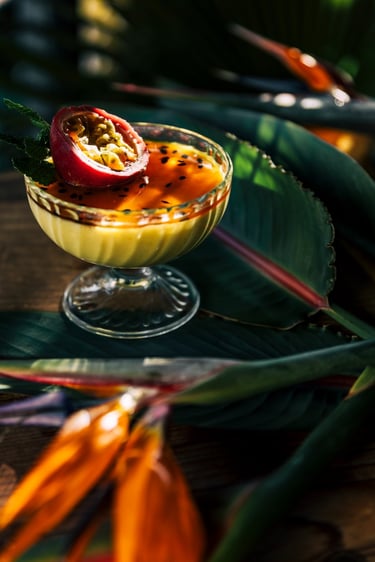 Sous une lumière rasante, chaque plat est minutieusement saisi, jouant subtilement sur les transparences des cocktails et intensifiant l'explosion de couleurs. Cette luminosité contribue aussi à accentuer les détails des textures et révéler les nuances vibrantes des assiettes. Ce domptage précis de la lumière vise à mettre en valeur l'habileté culinaire de la Cheffe, évoquant une ambiance propre aux pays tropicaux et renforçant ainsi l'identité du restaurant. Telle une symphonie visuelle, est établie une connexion mémorable entre l'univers très graphique des mets et les plaisirs gastronomiques. C'est ainsi que chaque plat au Rodízio Nice transporte les convives vers les saveurs exotiques et ensoleillées.