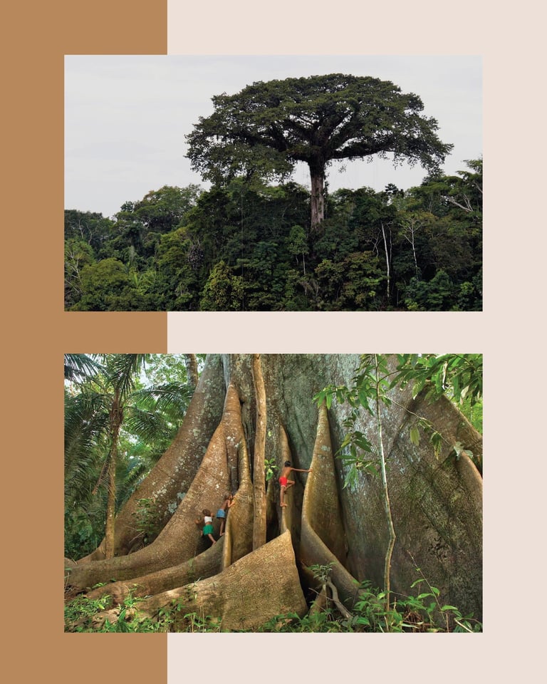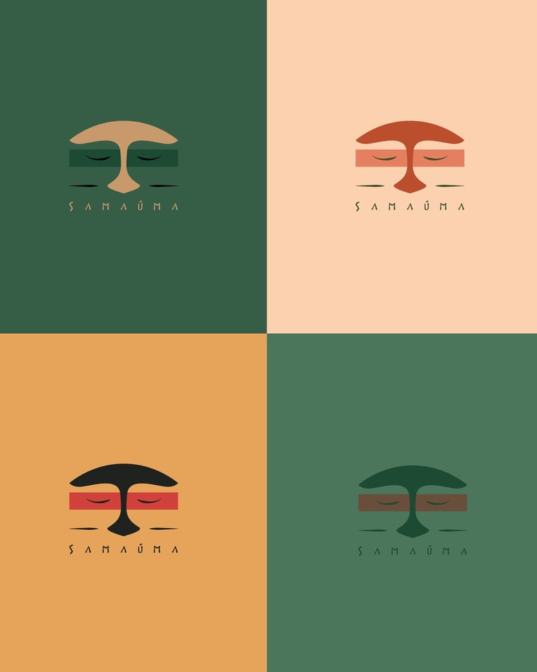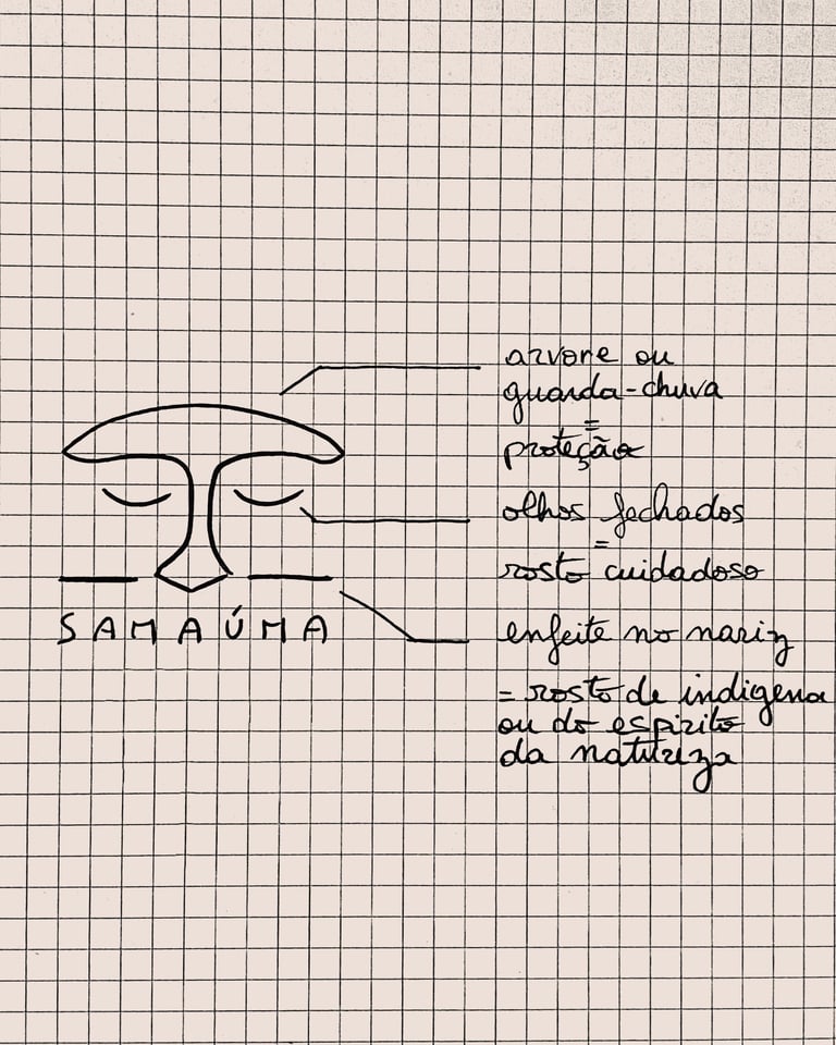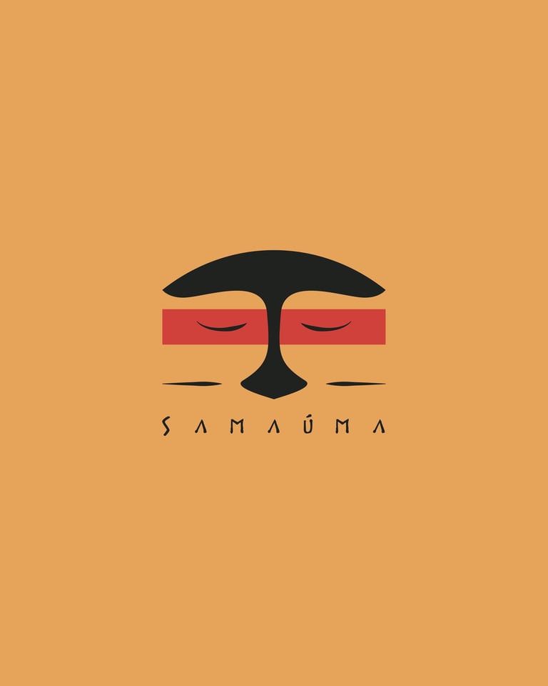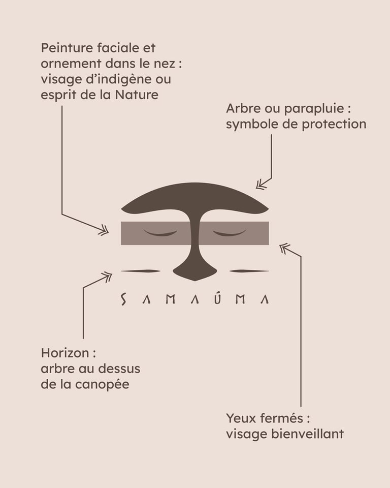 Les yeux fermés du visage portent une signification profonde, symbolisant la bienveillance et la résilience des populations locales, ainsi que la connexion spirituelle avec l'Esprit de la Nature. Ce logo devient ainsi un hommage visuel à la symbiose entre l'humanité et la nature, illustrant l'engagement inébranlable de Samaúma envers la préservation, l'aide et le respect des populations défavorisées dans le Nord du Brésil.