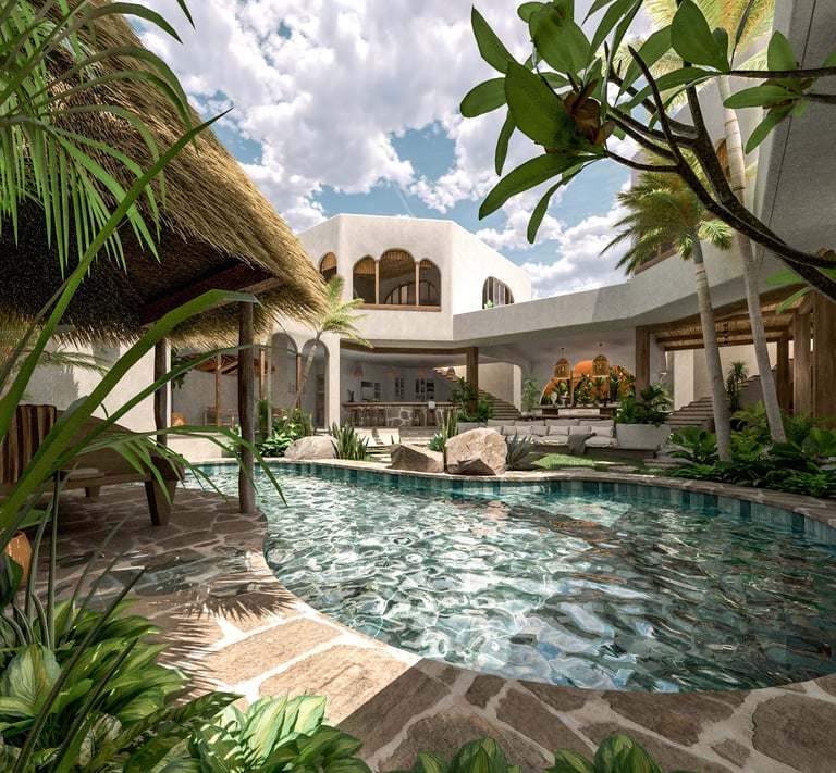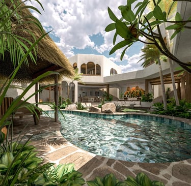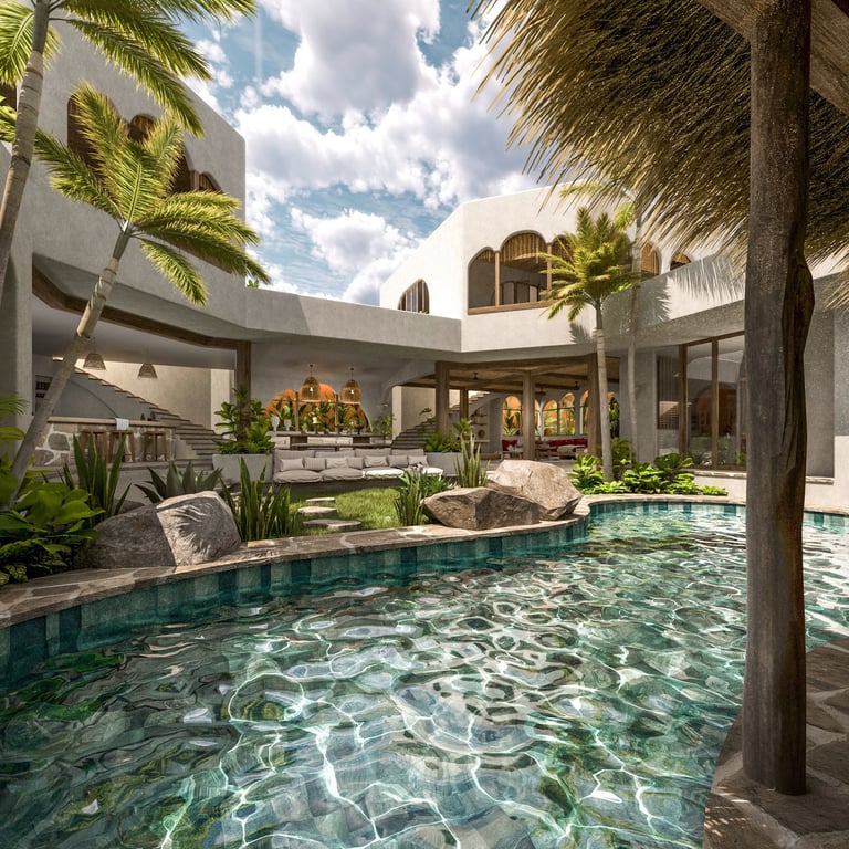 Nichées au cœur d'une rizière balinaise dans le quartier d'Umalas, les villas jumelles Marni I et II émergent comme le fruit d'une collaboration architecturale avec Nicolas Capron, transcendant les traditions du mode de vie tropical pour donner naissance à deux villas à l'architecture singulière. Chaque détail, depuis l'intégration harmonieuse des structures dans le site jusqu'aux minutieux choix de conception du mobilier sur mesure et des pièces de design, contribue à forger une œuvre cohérente. Sur deux niveaux, ces résidences se distinguent par l'utilisation de poutres et de piliers en bois recyclé, empruntés à l'architecture emblématique de l'Asie du Sud-Est et des cabanes traditionnelles des rizières. Guidée par une sensibilité aux contraintes climatiques et une préférence pour les lignes épurées et les matériaux naturels et locaux, la construction de ces deux villas exceptionnelles les enracine solidement dans leur environnement, les imprégnant de l'histoire de leur terre.