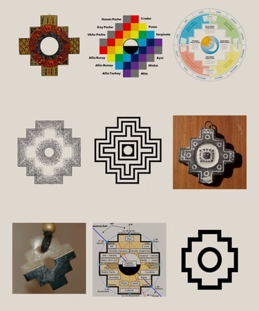 Le nom de l’entreprise et le symbole du logo s’inspirent librement des origines colombiennes du client et de la richesse symbolique des cultures précolombiennes. La référence choisie est la Chakana, également appelée Croix des Andes, un symbole millénaire présent dans de nombreuses civilisations andines. Dans la cosmovision andine, la Chakana représentait bien plus qu’un simple signe graphique. Elle constituait une véritable représentation de l’univers et de l’être humain, un schéma d’équilibre reliant les différents plans du monde.