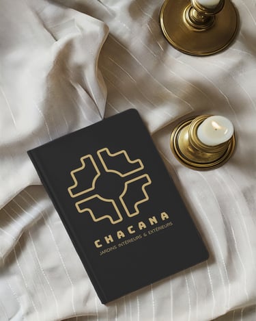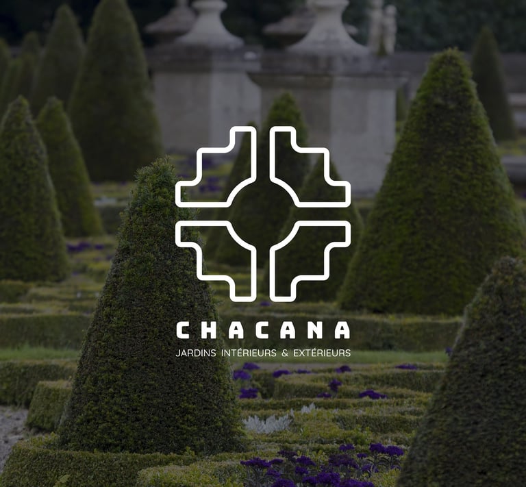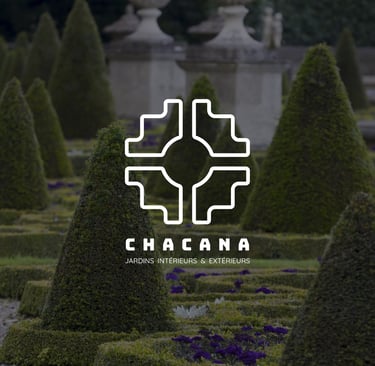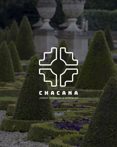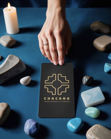 Sa géométrie s’est révélée particulièrement pertinente pour traduire l’univers du client. La composition équilibrée de la Chakana évoque à la fois l’organisation d’un jardin vu du ciel, comme dans la tradition des jardins ordonnancés, mais peut également être interprétée comme une fleur stylisée. Cette double lecture relie naturellement le monde végétal et l’idée d’énergie vitale, deux dimensions au cœur de l’activité du client.