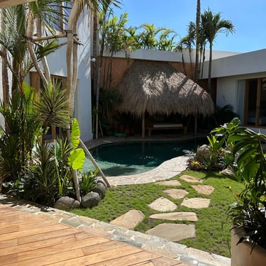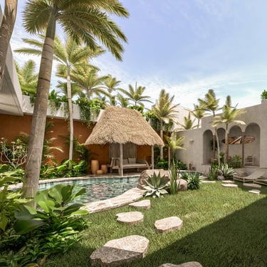 Nichées au cœur d'une rizière balinaise dans le quartier d'Umalas, les villas jumelles Marni I et II émergent comme le fruit d'une collaboration architecturale avec Nicolas Capron, transcendant les traditions du mode de vie tropical pour donner naissance à deux villas à l'architecture singulière. Chaque détail, depuis l'intégration harmonieuse des structures dans le site jusqu'aux minutieux choix de conception du mobilier sur mesure et des pièces de design, contribue à forger une œuvre cohérente. Sur deux niveaux, ces résidences se distinguent par l'utilisation de poutres et de piliers en bois recyclé, empruntés à l'architecture emblématique de l'Asie du Sud-Est et des cabanes traditionnelles des rizières. Guidée par une sensibilité aux contraintes climatiques et une préférence pour les lignes épurées et les matériaux naturels et locaux, la construction de ces deux villas exceptionnelles les enracine solidement dans leur environnement, les imprégnant de l'histoire de leur terre.